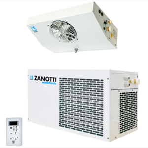 Condensing unit made as a complete package by all robotic production lines of Zanotti company in Italy Condenser and evaporator with low operating noise.